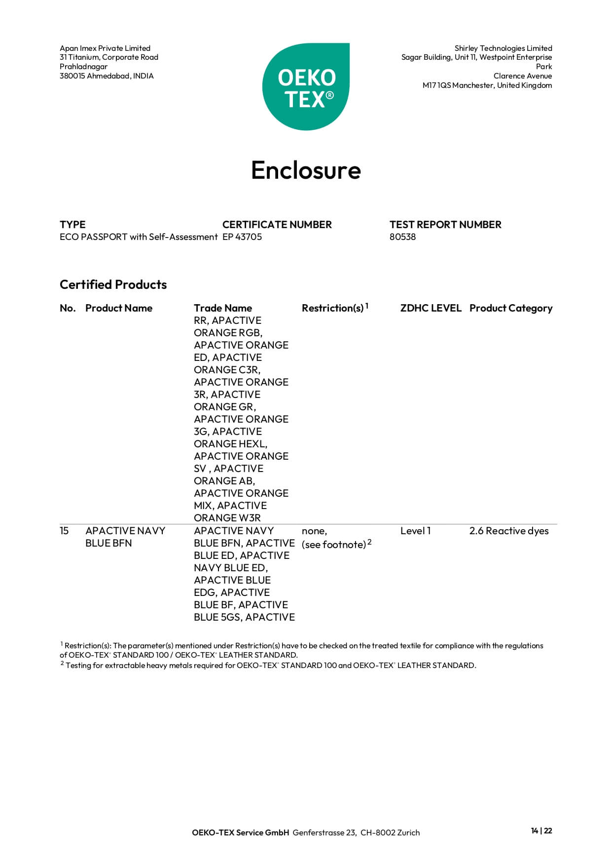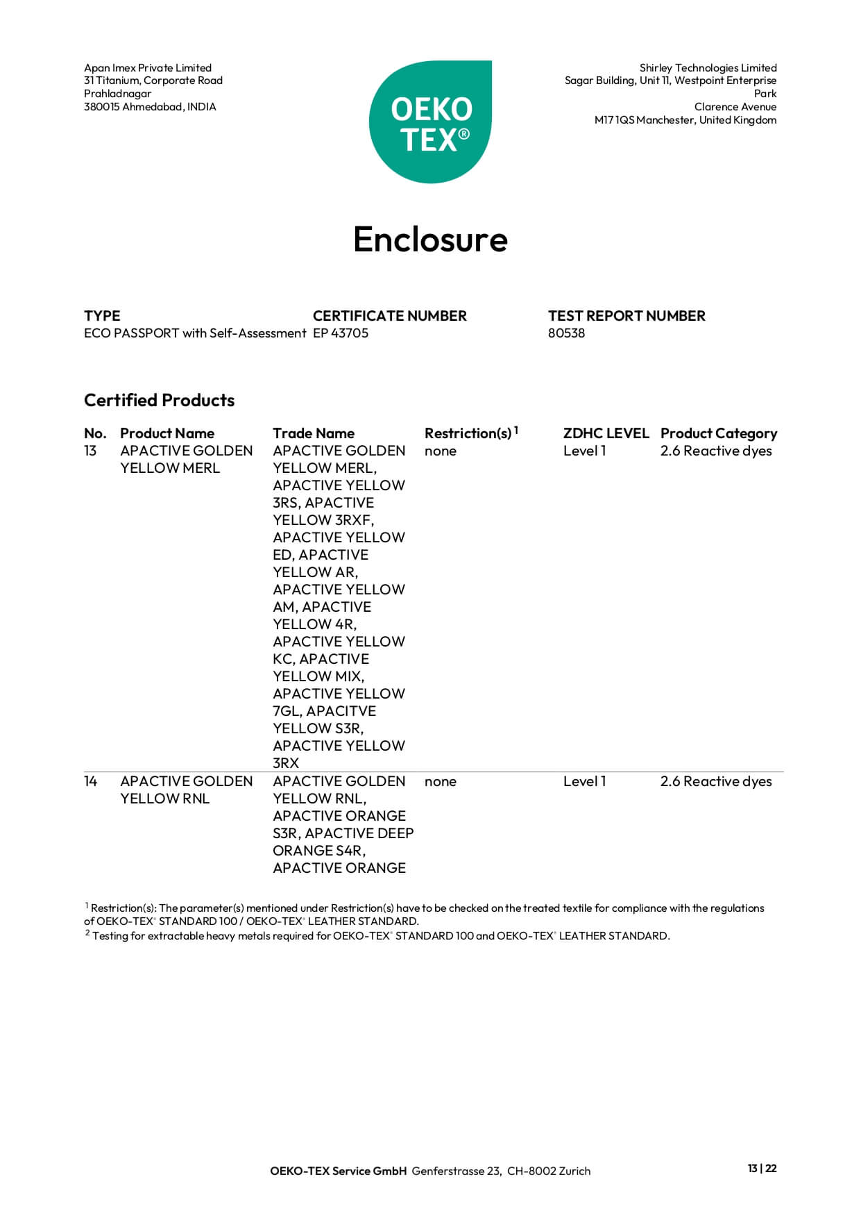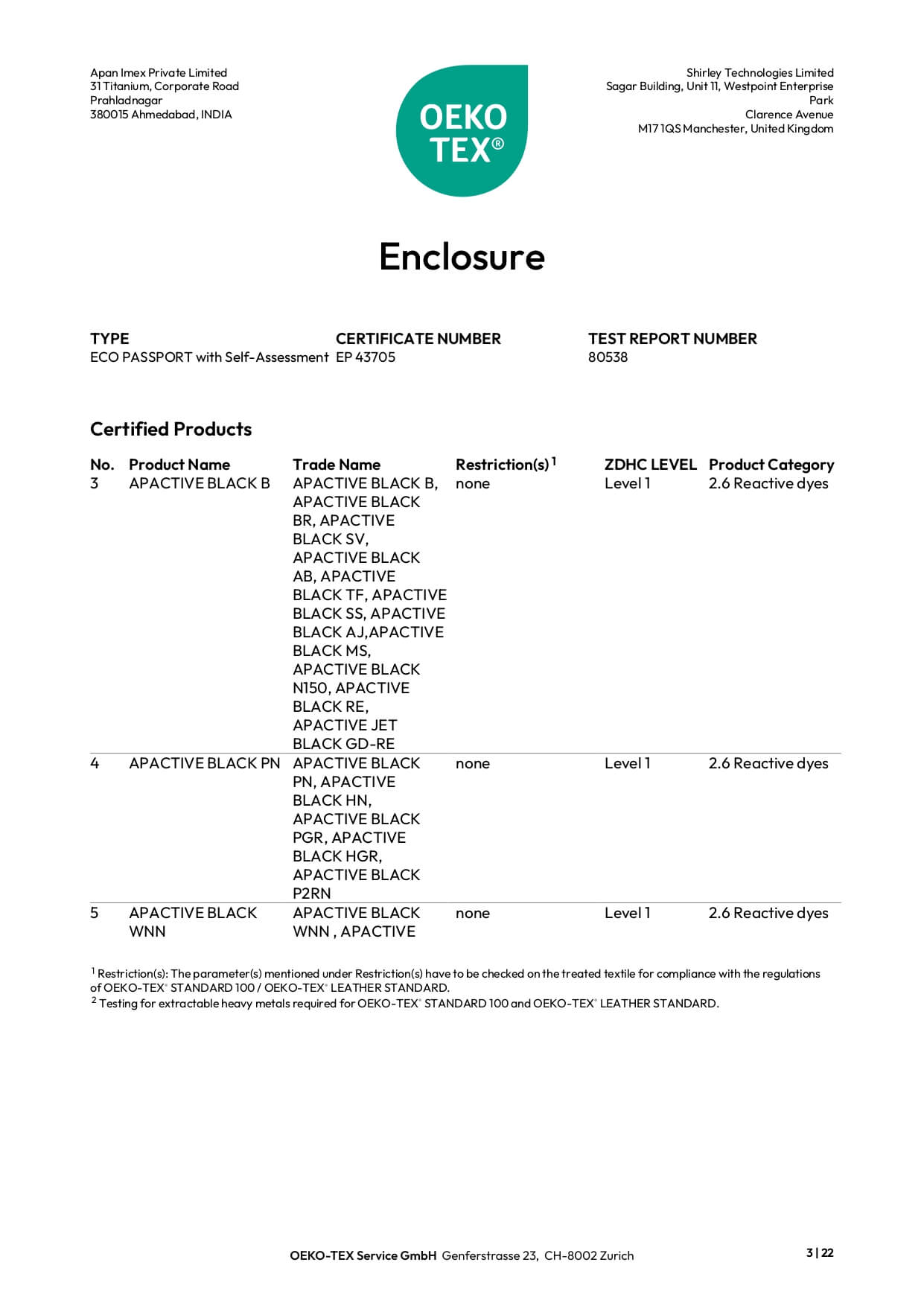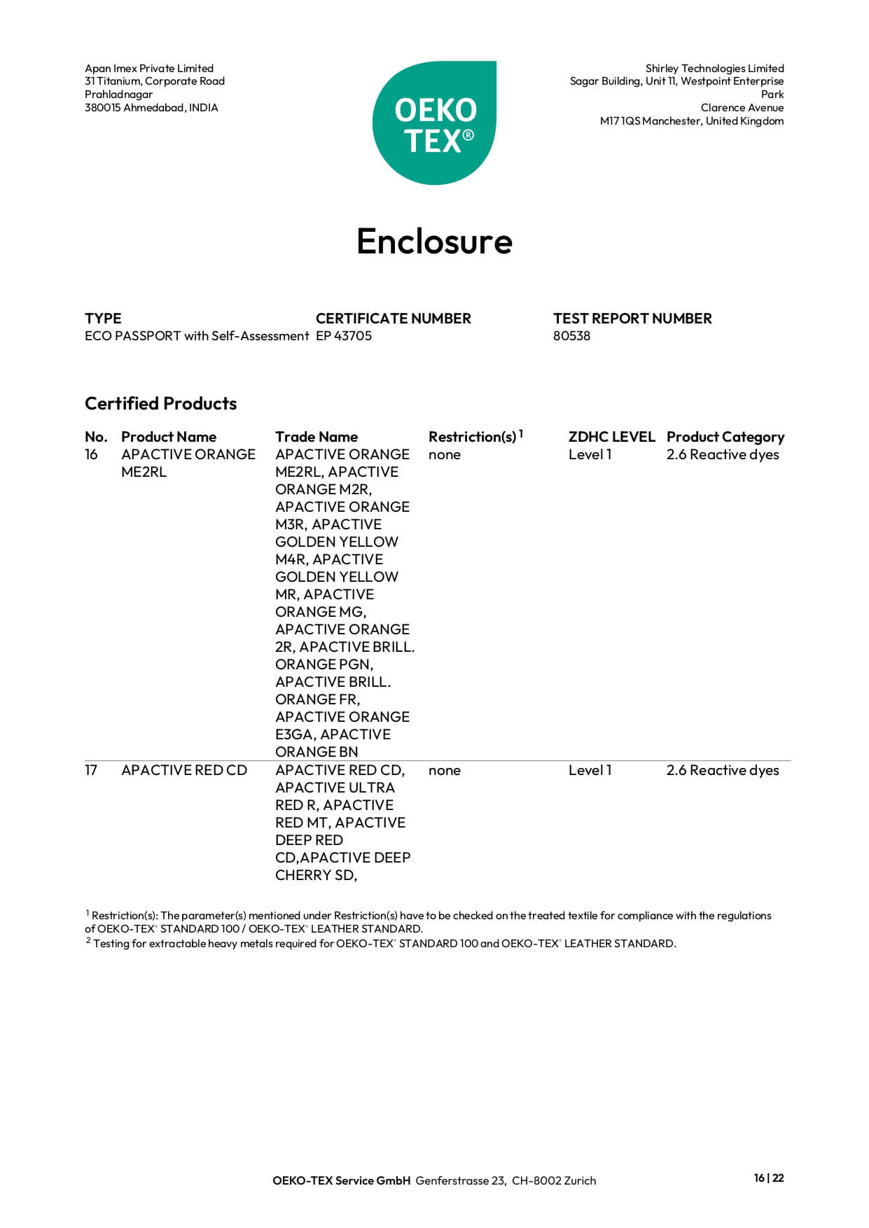 ECO PASSPORT CERTIFICATE REACTIVE DYES