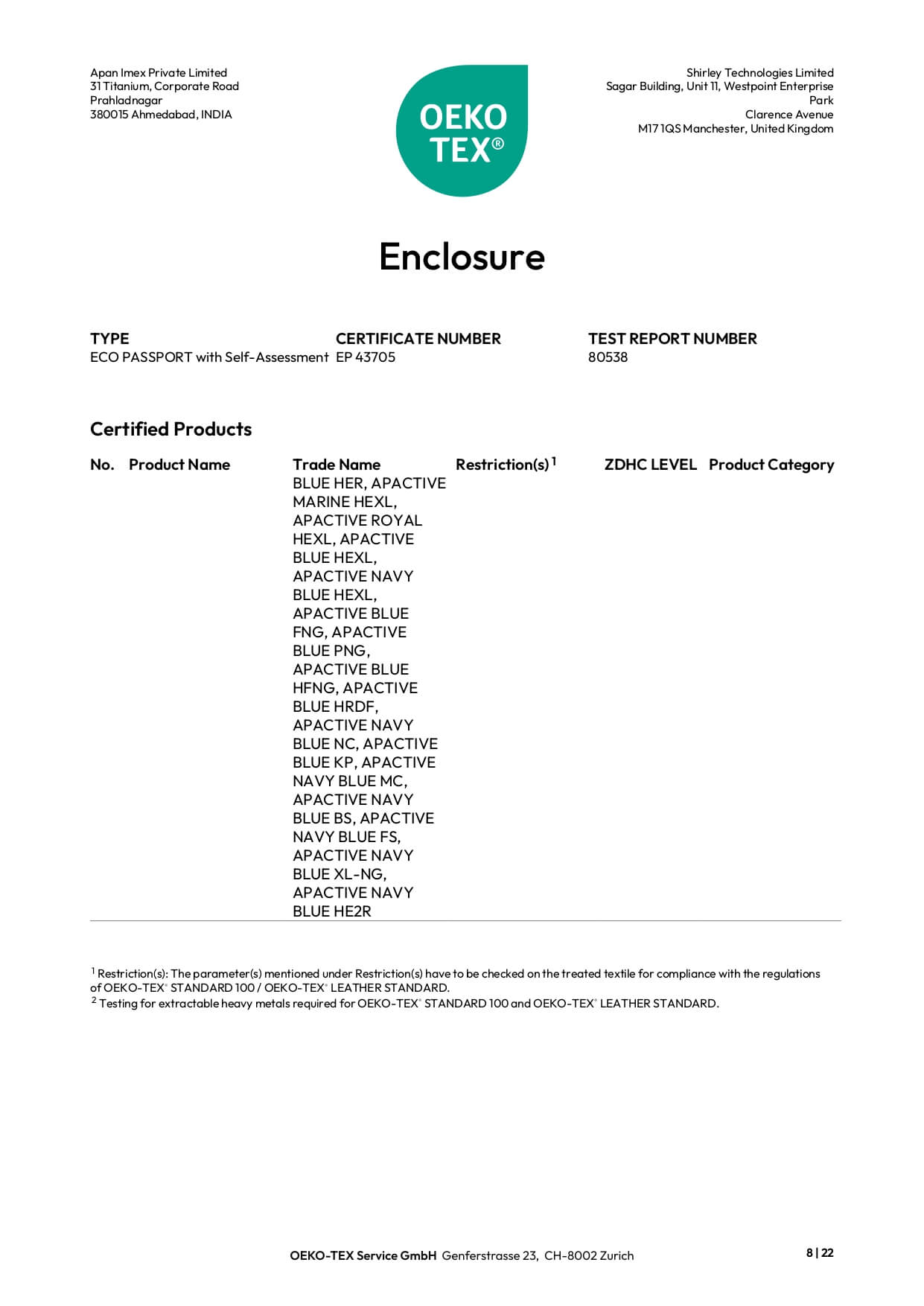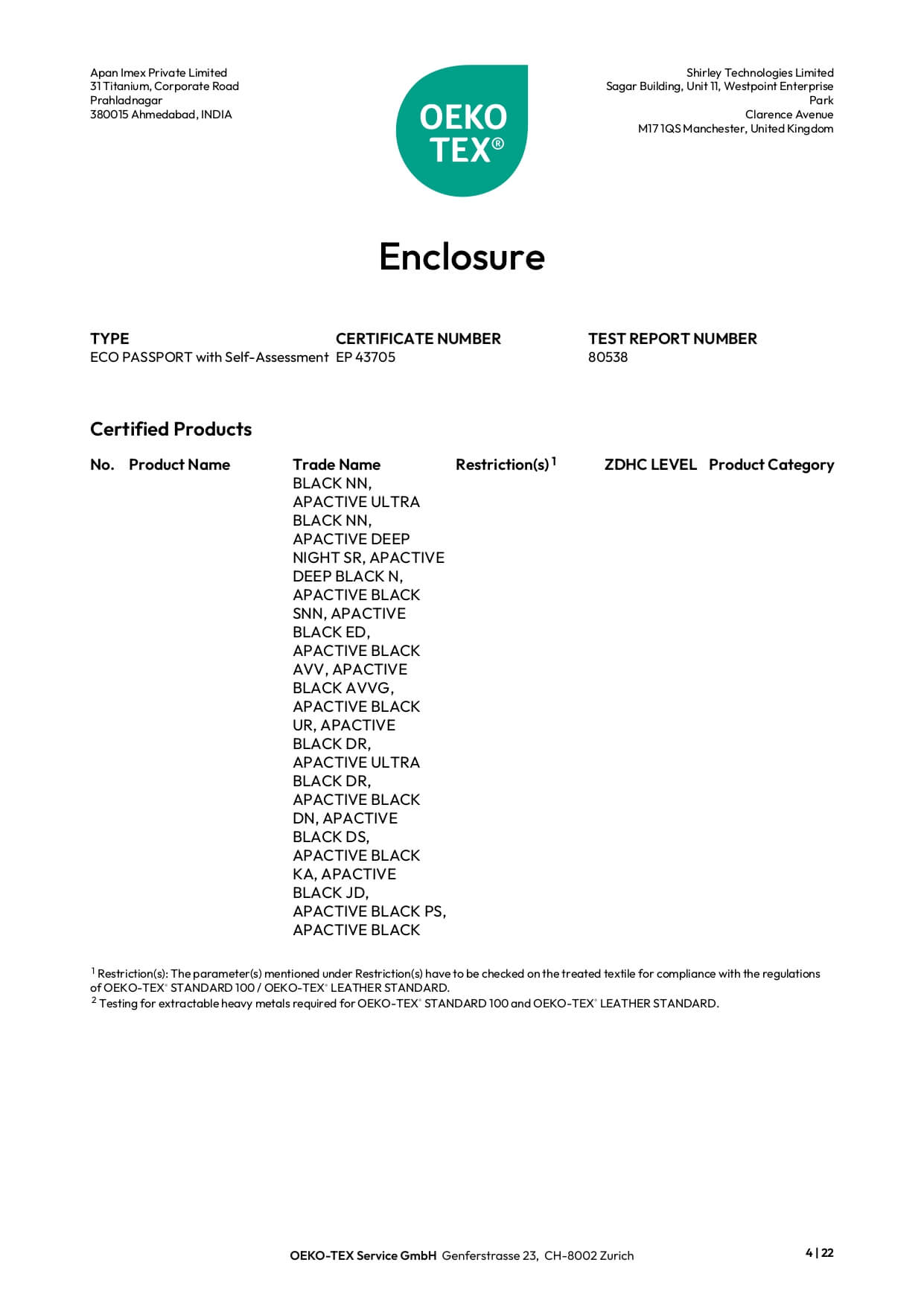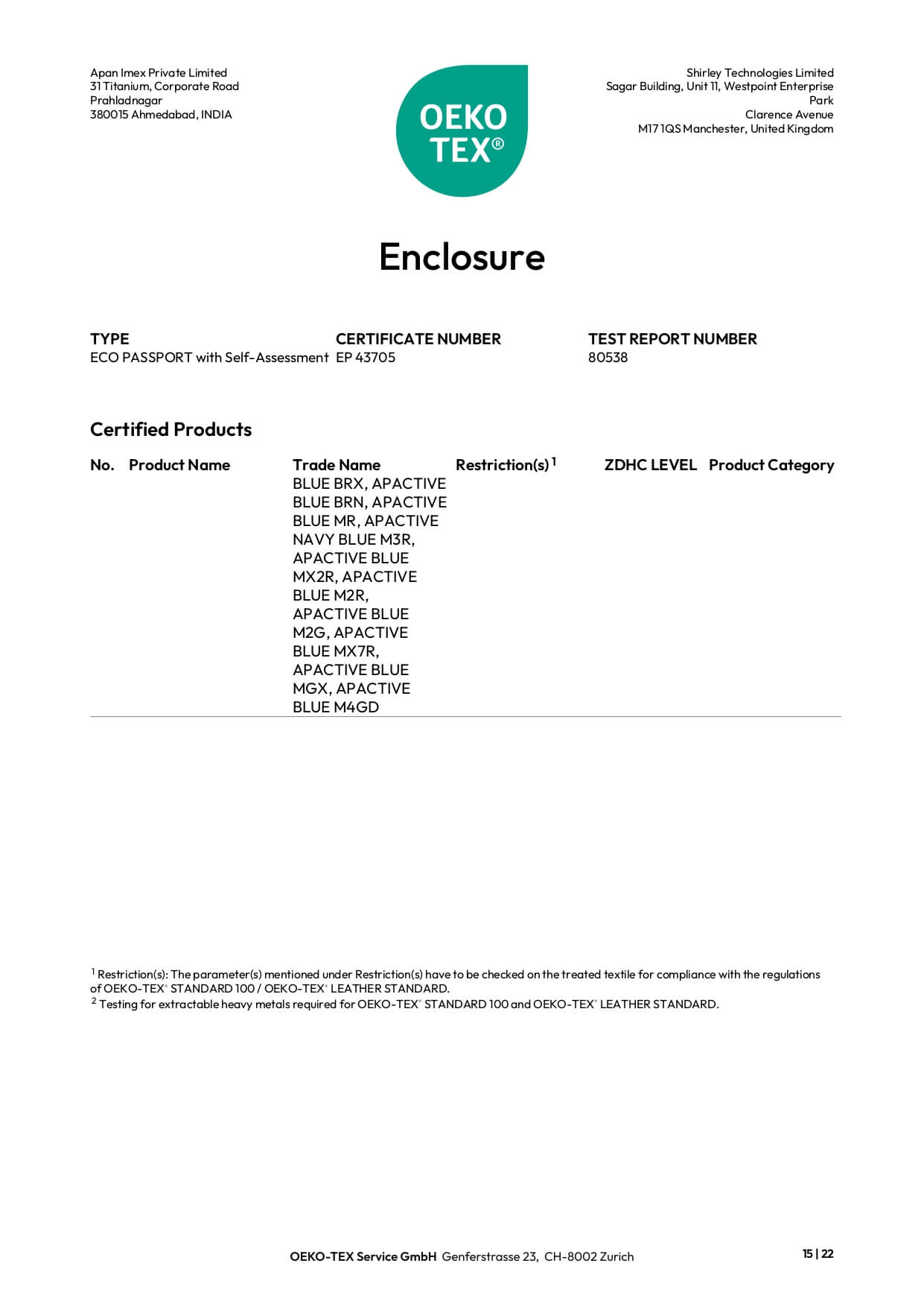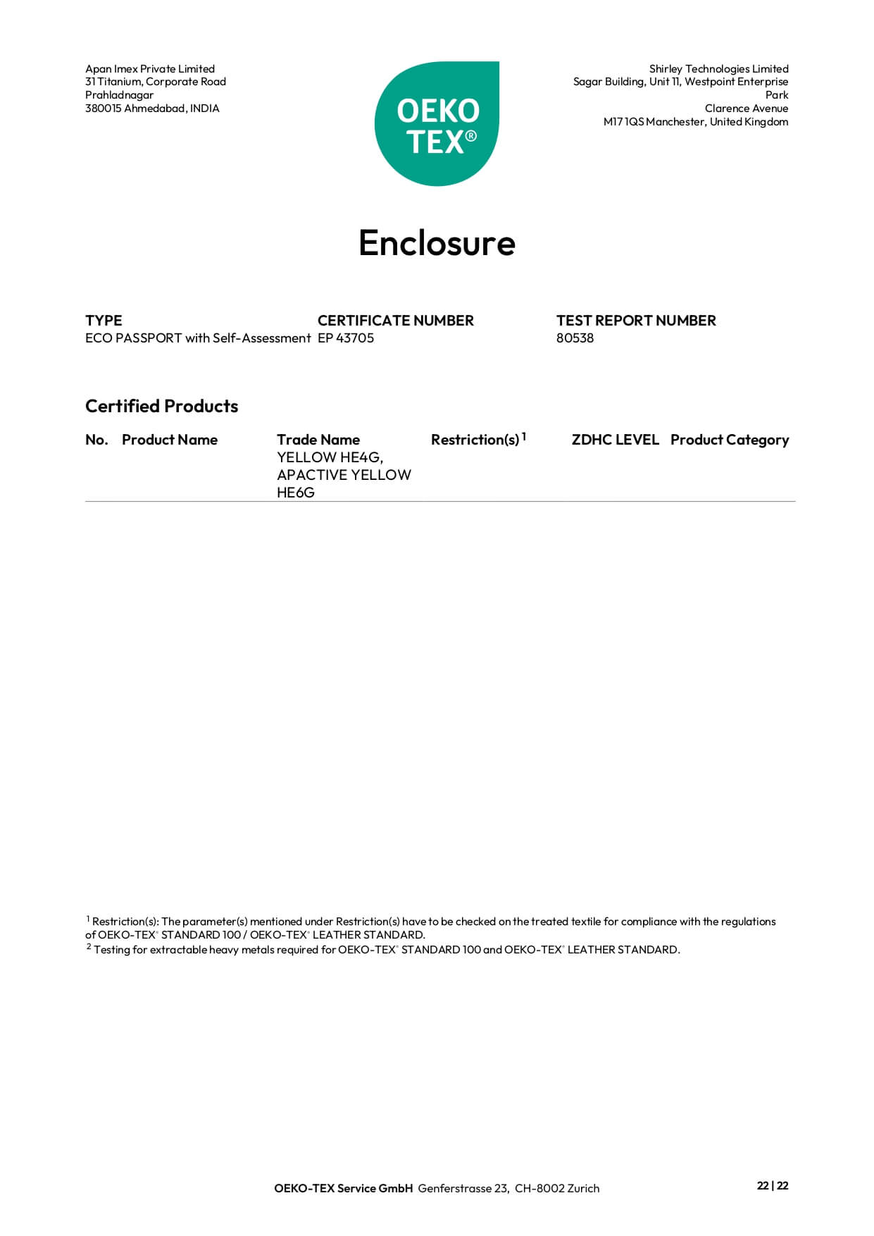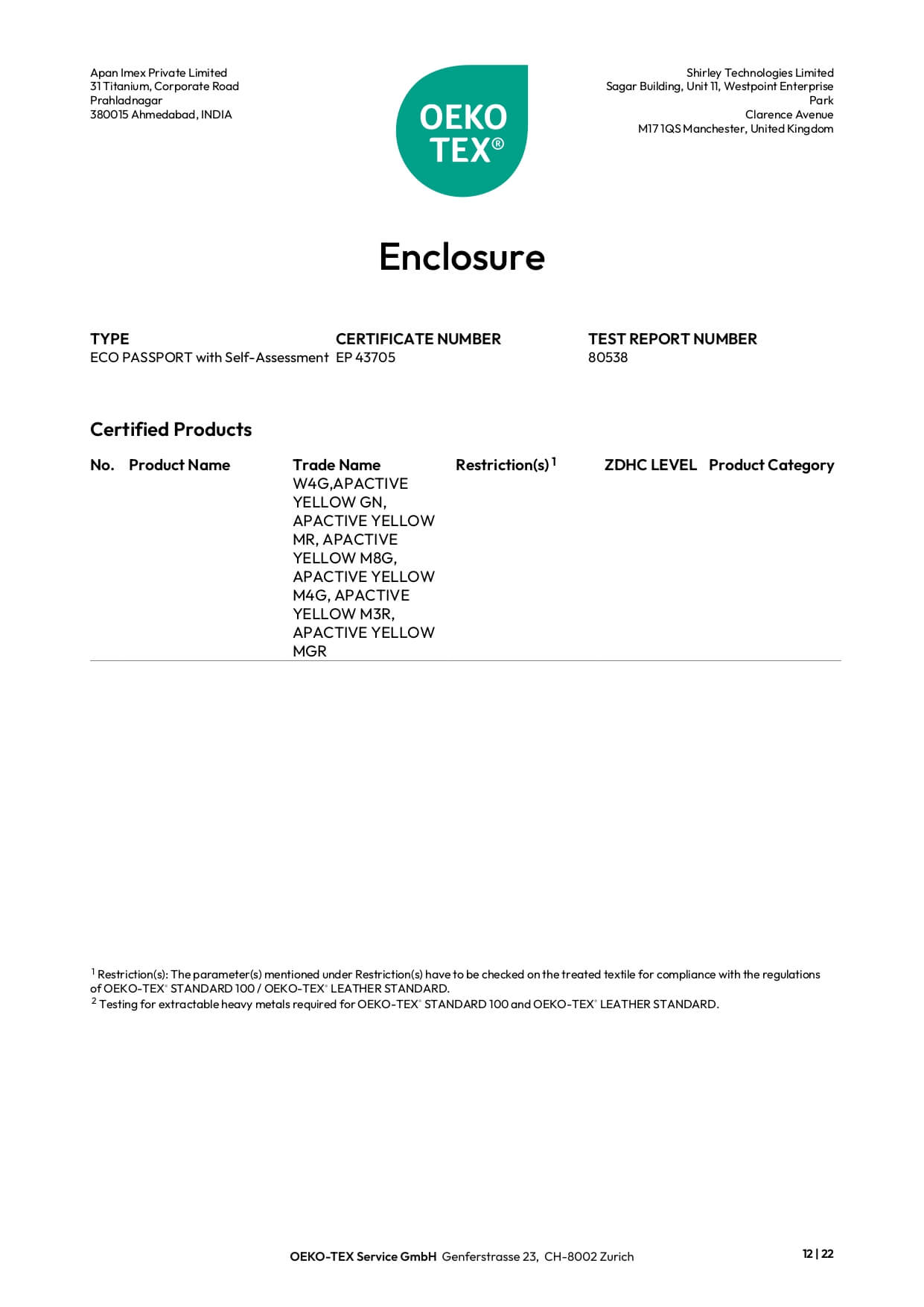 ECO PASSPORT CERTIFICATE DIRECT DYES